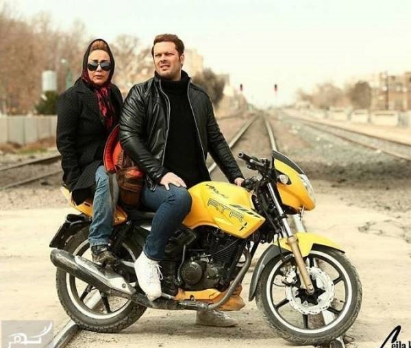 پژمان بازغی،بهنوش بختیاری را سوار موتورش کرد +عکس