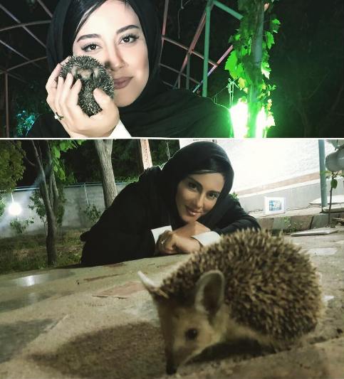 این بازیگر 42 ساله در این عکس در کنار یک جوجه تیغی دیده می شود.