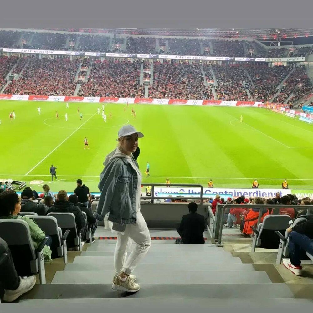 مهناز افشار، عکسی از خود را در ورزشگاه بای‌آرنا در اینستاگرام به اشتراک گذاشت. او به تماشای بازی خانگی بایر لورکوزن با اینتراخت فرانکفورت نشسته بود.
