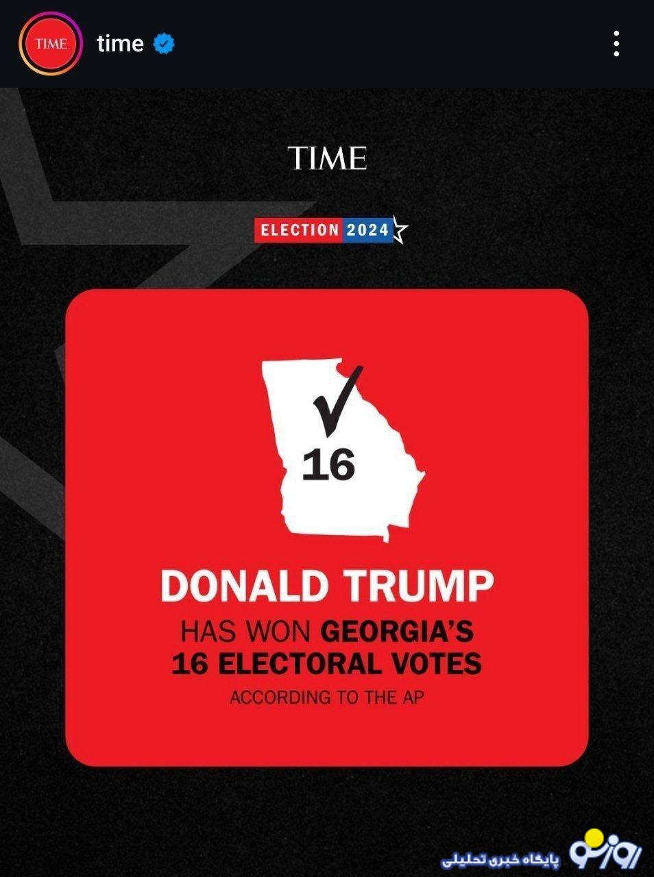 حساب کاربری مجله "تایم" آمریکا به صورت رسمی ترامپ را به عنوان رئیس‌جمهور اعلام کرد.