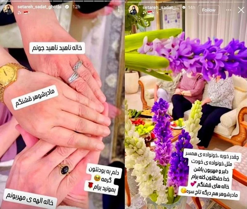 روزنو :ستاره سادات قطبی، مجری و بازیگر تلویزیون، برای اولین بار تصاویری از مادرشوهر و جاری خود را در فضای مجازی منتشر کرد که لحظاتی خاص و خانوادگی را به نمایش می‌گذارد.
