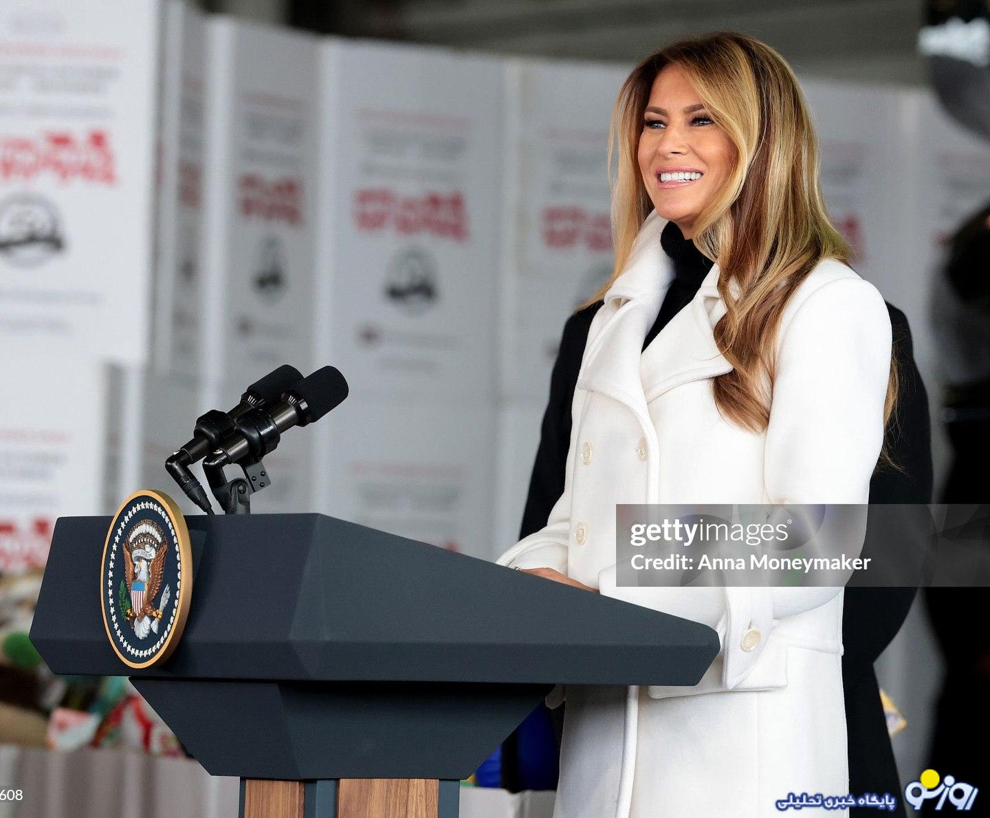 ملانیا ترامپ، با لبخند و هیجان کریسمسی، به همراه سانتا (بابانوئل) در پایگاه تفنگداران دریایی آمریکا در کوانتیکو، ویرجینیا حاضر شد تا با اهدای اسباب‌بازی، جشن کوچکی برای کودکان خانواده‌های نظامی برگزار کند.